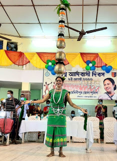 “International Adibashi Day” was organized by Paschim Medinipur District Police in association with kharagpur town ps in Prembazar, Hijli Co-operative Society “Moitryee Bhaban”, Smt Bijoli Murmu, an international figure displayed Santhali dance with pitchers on her head.