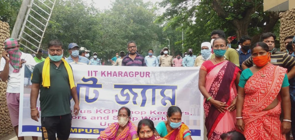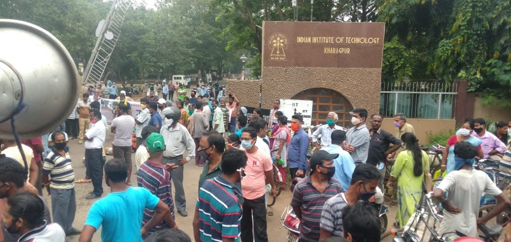 खड़गपुर। आईआईटी प्रशासन पर मनमानी करने का आरोप लगा आईआईटी कैंपस के अंदर दुकान चलाने वाले दुकानदार व अवसरप्राप्त कर्मचारियों ने आज सुबह आईआईटी के मुख्य गेट के समक्ष विरोध प्रदर्शन किया जो कि 7 से 9 करीब दो घंटे तक चला। दुकानदारों का कहना है कि केंद्र व राज्य सरकार की अनलाक के नियम को ना मानकर आईआईटी प्रशासन खुद ही कैंपस के अंदर लाकडाउन चला रही है जिसके तहत कैंपस के अंदर स्थित दुकानों को 2 बजे ही बंद करने को कहा गया है। ऐसे में केवल एक वक्त दुकान खोलकर वे दुकानदारी नही कर पाएंगे साथ ही दुकान का किराया भी नही दे सकेंगे इसके अलावा आईआईटी प्रशासन पर यह भी आरोप है कि कैंपस के चार गेट होने के बावजूद प्रशासन की ओर से केवल एक ही गेट को खोला गया है बाकी के तीनों गेट बंद पड़े है। कर्मचारियों का कहना है कि अगर प्रेमबाजार इलाके में रहने वाले किसी कर्मचारी को कुछ काम से अगर कैंपस के अंदर दाखिल होना हो तो उन्हें कई किलोमीटर का लंबा रास्ता तय करके आना पड़ रहा है जिससे उन्हें जो परेशानी हो रही है वही जानते है।
