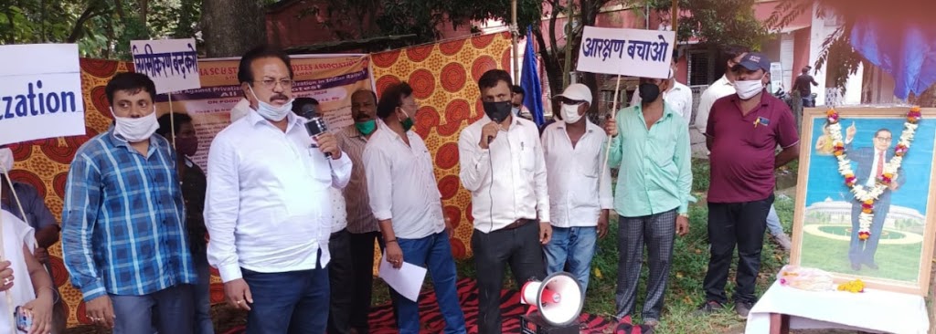 ऑल इंडिया रेलवे एससी एंड एसटी एंप्लॉयीज एसोसिएशन की ओर से रेलवे में निजीकरण निगमीकरण के विरोध में पूना पैक्ट दिवस मनाया गया, द पू रेलवे के सभी मंडल कार्यालय एवं खड़गपुर कारखाना में निजीकरण एवं निजीकरण के बिरोध में प्रदर्शन हुआ