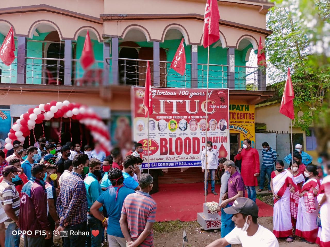 kharagpur, 78 units blood collected in the completion of centenary yr of Aituc. A blood donation camp was organised in a pvt hotel at BR Nagar puri gate. aituc leader v sheshgiri rao said aituc