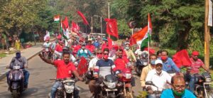 kharagpur, kharagpur town left front & congress demonstrated a bike rally on sunday to support 26th november national strike all over country .It started from IIT petrol pump along with 500 bikes.The rally covered a large area of the town like Bogda Kaushalya Puratanbajar Jhapetapur Inda Traffic Golebajar Kharida Malancha Nimpura, New settlement Cme gate etc.The demands of the strike stop to privatize Rly Bank Defence Coal sector,To witdraw anti workers labour codes , Free ration for all,scrap anti farm bill 2020 etc.