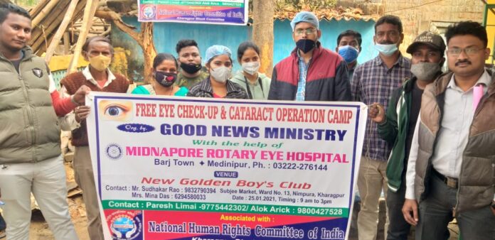 kharagpur, Free Eye Check-up & Cataract Operation Camp Org by Good News Ministry & National Human Rights Committe of India (Kharagpur Blok Committee) With help of Midnapore Rotary Eye Hospital at new Golden boys club, nimpura sabji market. Alok Eric said total 98 patient eere checked in which total 30 patient identified as Cataract patient.