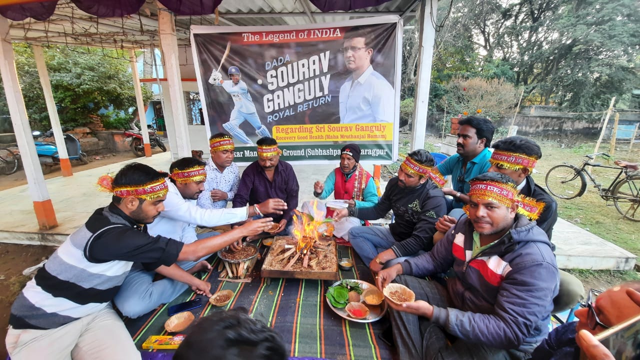kharagpur, Maha Mrityunjaya Homam for Speedy Recovery of Dada Sourav Ganguly organised near BNR Ground Shiv Mandir Subhaspally by cricketlovers of kharagpur. R Kishor , Mohan Rao, Rahul Sharma, Akshay Das,,Abhimanyu Gupta,Bhaskar Rao & others joined the yagna. Sourav was affected with heart attack on saturday. Now he is being treatrd in a private nursing home & recovering.