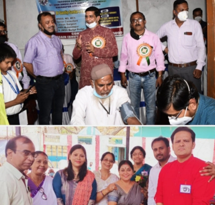 Free Cardiac Checkup Camp jointly organised by St. John Ambulance India Brigade wing, Kharagpur Ambulance Division & Young Generation Club, held at Bhawanipur Gate near Old SBI Bank on Saturday.