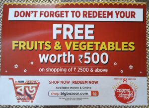 बांग्ला नववर्ष के उपलक्ष्य में बिग बाजार का आफर, 2500 की खरीदी पर 500 रु के फल व सब्जी मुफ्त