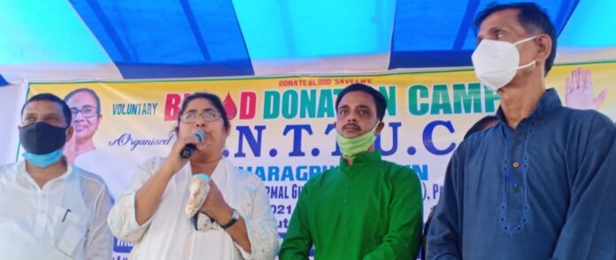 Kharagpur. MP and National President of INTTUC Dola Sen, taking the initiative to stop the ongoing cold war in Kharagpur politics, instructed the leaders to work with Munmun. Dola inaugurate the blood donation camp organized by INTTUC. Addressing the program organized near Golbazar TMC party office, Dola said that Munmun was an efficient organizer and played an important role in the party so work together. Tmc sources said Munmun was in Kolkata today, so he was not in the program. Dola said camps are being organized by INTTUC to overcome the shortage of blood. Till now more than 2000 in more than 30 blood donation camps. Kharagpur town Trinamool Trade Union Congress President Tapan Sengupta, played a key role in organizing the program, said that under Dola’s instructions, the camp was organized during the covid period in which a total of 40 units of blood were collected. Veteran Tmc leader rabi Shankar pandey, Jahar Lal Pal, Sheikh Hanif, Youth Trinamool President Asit Pal, District Trinamool Youth Congress Secretary Sonu Singh, TMC leader Partha Mukherjee, Akash of CP Ashish Chakraborty, Sunil Sonkar, Kartik, Pramod, Sheikh Shamsher , TMC’s city women president Sumita Das, Saraswati & others were present.