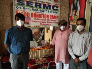 SERMC remembered the day of 9th August, 1942, and dedicated the day for the brave soul who fought for the freedom of our country by successfully organising a BLOOD DONATION CAMP today at Kharagpur Rly. station, Platform No.3. The Camp was enlightened by the presence of respected CMS Sir & Secretary of K.V.B.D.A. In addition to the above, Sr.DPO/KGP, Sr.DME(O/L), Sr.DME(Diesel)/KGP and SrDEE/TRD/KGP attended for the grand success of the camp. Sri.Lal Babu, Sri. Ranjit Bhaduri and Sri Ajay Nath attended the camp as a Central Representative of SERMC.