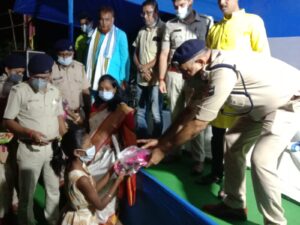 पूजा के अवसर पर पुलिस ने किया वस्त्रदान, रावण दहन की तैयारियां जोरो पर
