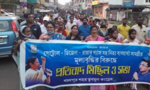 পেট্রপন্যের মূল্যবৃদ্ধি এবং ত্রিপুরায় তৃণমূল কর্মীদের উপর বিজেপির আক্রমণের প্রতিবাদে পদযাত্রা ও প্রতিবাদ সভা অনুষ্ঠিত হলো তৃণমূল কংগ্রেসের নেতা দেবাশীষ চৌধুরীর নেতৃত্বে। মালঞ্চ অতুলমনী স্কুল থেকে শুরু হয়ে খরিদা তৃণমূল অফিস পর্যন্ত এই মিছিলে উপস্থিত ছিলেন অপূর্ব ঘোষ,তুষার চৌধুরী, অরুপ কুন্ডু,তপন সেনগুপ্ত সহ বিভিন্ন ওয়ার্ডের তৃনমুল নেতৃত্ব।ভিড়ে ঠাসা এই মিছিলে মহিলাদের উপস্থিতি ছিলো চোখে পড়ার মতো।
