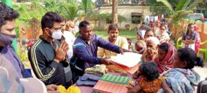 : শাড়ি, ধুতি, লুঙ্গি, ছোটদের জামা প্যান্ট ও কম্বল বিতরণ করা হয়।