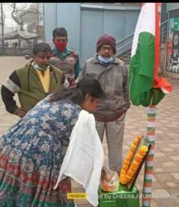 National flag was hoisted by Hema Chaubey , President malancha Super Market baybsayee samity.