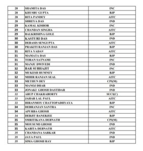पी रत्ना कुमार बीते दिनों टीएमसी से जुड़े थे व टिकट नहीं मिलने पर पर्चा दाखिल किया था जबकि बेला रानी अधिकारी भाजपा से नाराज हो कर नमिता दास को टिकट दाखिल करवाई थी। वार्ड संख्या 19 से सत्यदेव शर्मा व उसके बेटे नितिन ने निर्दलीय पर्चा भरा था बेटे ने पिता के लिए अपना पर्चा वापस ले लिया।