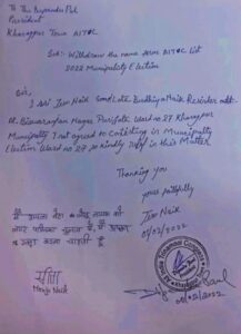 काकली ने पत्र में अपरिहार्य कारण बताया है ज्ञात हो कि पहले वार्ड 11 से पियाली भट्टाचार्य का नाम था पर कुछ घंटे के बाद दूसरे लिस्ट में काकली के नाम की घोषणा की गई जबकि जेसु का नाम पहली लिस्ट से है। काकली के पति लंबे समय से ट्यूटर है व नामक संस्था चलाते हैं पति जयंत का कहना है कि उसके वृद्ध पिता व पत्नी की तबियत ठीक नहीं रहती जिसके कारण नाम वापस लिया जा रहा है। जबकि जेसु की मां सीता व बड़ी दीदी मंजू नायक ने भी अपने बेटे के चुनाव लड़ने पर अनिच्छा जतायी है पता चला है कि 23 वर्षीय जेसु के पिता नगरपालिका के कर्मी थे व वह अपने नौकरी होने की प्रतीक्षा में है। जेसु अपने मां व दीदी के साथ पुरी गेट में भाड़े के घर में रहता है। पता चला है कि जेसु के दोस्त ने व्हाट्सएप में एससी कास्ट सर्टिफिकेट मंगाया व बाद में उसकी जानकारी के बगैर उसके नाम प्रत्याशी की सूची में आ गया।