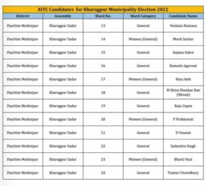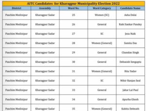खड़गपुर नगरपालिका सहित 108 नगरपालिकाओं के लिए टीएमसी ने घोषित की प्रत्याशी, शेख हनीफ सहित कई पार्षदों का कटा पत्ता, कई नए चेहरे शामिल