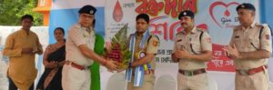 एसपी खड़गपुर शहर थाना की ओर से आयोजित रक्तदान शिविर में भाग लिया व कहा कि पुलिस जिले भर से कुल 2500 युनिट रकत संग्रेह का लक्ष्य रखा है जिसमें सें 1500 युनिट रक्त संग्रहित किए गए हैं उन्होने खड़गपुर में भाईचारे बनाए रखने की प्रशंसा करते हुए कहा कि यहां के हिंदू मुस्लिम समुदायों ने जो भाईचारा दिखाया है वह काबिले तारीफ है उन्होन कहा कि पुलिस सदैव लोगों के साथ है इस अवसर पर खड़गपुर शहर थाना प्रभारी विश्वरंजन बनर्जी ने कहा कि रक्तदान व अन्य सामाजिक कार्य के माध्यम से पुलिस व जनता के बीच वह बेहतर संबंध चाहते हैं उन्होने आयोजकों की भी प्रशंसा की। पार्षद डी वासंती ने कहा क लोगों को रक्तदान से डरना नहं चाहिए वह खुद सात बार रकतदान कर चुकी है।