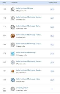 A total of 41 universities from India have made it to the QS World Rankings 2023. IISC Bangalore has secured the first position among the Indian institutions with an overall score of 49.5 India has also come out strongly on the research front, with IISc emerging number one globally in the ‘citations per faculty’ (CpF) indicator.