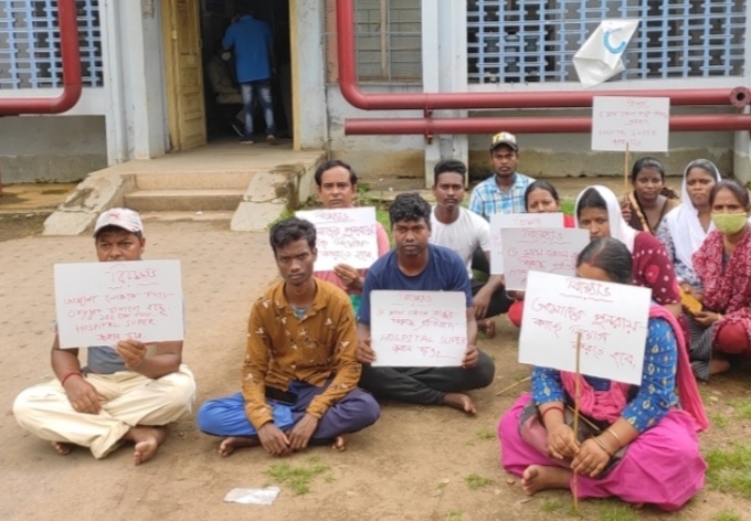 खड़गपुर महकमा अस्पताल के कोविड सेफ होम के 18 अस्थाई कर्मचारी बुधवार को अस्पताल सुपरिटेंडेंट कार्यालय के समक्ष धरने में बैठ गए व मांगों की तख्ती लिए नारेबाजी के जरिए विरोध दर्ज कराए। कर्मचारियों कीमांग है कि उनलोगों को पुनः नियुक्ति देनी होगी, बाहरी लोगों की नियुक्ति नही चलेगी .अविलंब बकाया वेतन भुगतान हो। धऱने पर बैठे कर्मचारी बाबू घोष का आरोप है कि पिछले 2 वर्षों से वे सब यहां कार्यरत हैं लेकिन विगत 5 महीने से उनलोगों के वेतन का भुगतान नही किया गया अब अचानक नौकरी से बैठा दी घई है। इन लोगं का कहना है कि कोविड काल से वे लोग जान जोखिम में डालकर वे लोग सेवाएं देते आ रहे है . अब अचानक फंड एलॉट ना होने का बहाने से उन सारे कर्मचारियों को छांट दिया गया है . इस प्रकार एक तरफ न तो बकाया वेतन ही मिल रहा है न ही पुनः नियुक्ति। सरस्वती नायक का कहना है कि उनलोगों को साफ सफाई के काम में भी लगाया गया। आक्सीजन प्लांट में अप्रशिक्षित लोगों को 100 रु दिहाड़ी में काम दे दिया गया जबकि उनलोगों को एक दिन का प्रशिक्षण दिया गया था।