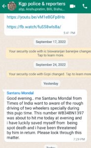 शांतनु ने घटना की जानकारी केजीपी पोलिस व रिपोटर्स ग्रुप में साझा की तो पुलिस त्वरित संज्ञान लेते हुए घटनास्थल पहुंचा हांलाकि तब तक आरोपी बाइकर्स वहां से फरार हो चुका था।