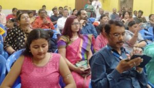 Kharagpur shankamala organise matribhasa dibas at Durga mandir Gupta Memorial hall.group song and recitation by members of shankamala.
