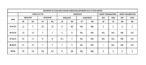 Train services of South Eastern Railway have been partially affected due to ongoing agitation by a group of people at Kustaur Station in Adra Division and Khemasuli Station in Kharagpur Division from 05.04.2023 and proposed agitation at Kotshila station in Adra Division on 09.04.2023. However, the reasons of the agitations are not related to Railways. As a result of the agitation, total 496 trains have been cancelled since 05.04.2023.
