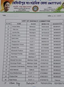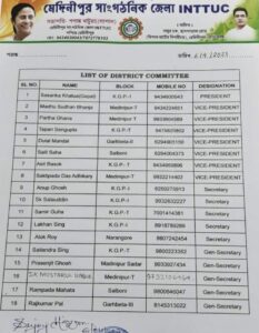তপন সেন গুপ্তকে আইএনটিটিইউসির জেলা সহ-সভাপতি এবং শৈলেন্দ্র সিংকে সাধারণ সম্পাদক এবং সমীর গুহকে জেলা সম্পাদক করা হয়েছে।