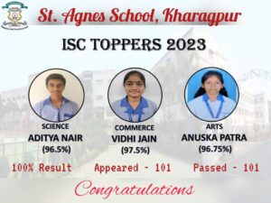 Ritu Singh..97.7%.. ISC first.                                  Suryadipto Khatua..94.7%.. ISC second          Aastha Prasad….92.5% ISC Third