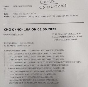 Particulars of derailment at BAHANAGABAZAR station of BHC section of KGP stn:
