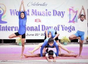 সঙ্গীতের সীমা ছাড়িয়ে একই দিনে আন্তর্জাতিক যোগ দিবসও পালন করা হয়েছিল| এবারের বিষয় ছিল “বসুধৈব কুটুম্বকমের জন্য যোগ”। দক্ষ প্রশিক্ষকদের তত্ত্বাবধানে ‘অনুলোম-বিলোম’ ‘সূর্য নমস্কারে’র মত আসনগুলি সত্যিই দর্শনীয় বিষয় ছিল| এমনকি বিদ্যালয়ের সভাপতি অভিষেক কুমার যাদব, অধ্যক্ষা রেনু আনেজা এবং শিক্ষার্থীদের তাদের দৈনন্দিন জীবনে যোগের সারমর্মকে অনুপ্রাণিত করতে এবং উদ্বুদ্ধ করার জন্য বিভিন্ন আসন করেছিলেন।