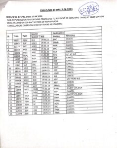 1. 08063 Kharagpur-Bhadrak MEMU Special, journey commencing on 19.06.2023, will be Short Terminated at Balasore.