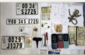 मोहनपुर ब्रिज से दो युवक गिरफ्तार, चोरी की बाइक, नगद व जेवरात सहित कई फर्जी नंबर प्लेट जब्त