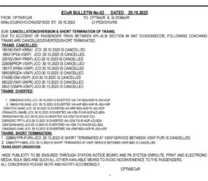- 20818 New Delhi-Bhubaneswar Rajdhani Express journey commencing on 29.10.2023 will run on diverted route via Chandil-Purulia-Kotshila-Muri-Hatia- Nuagaon-Rourkela
