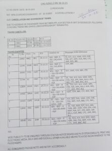 In view of public agitation at Bisra Station from 6.45 hours in Chakradharpur Division of South Eastern Railway, the following trains will be regulated as under:-