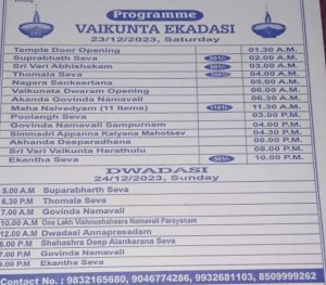 VAIKUNTA EKADASHI which will occur ON 23/12/23 SATURDAY.
