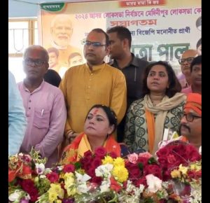 BJP candidate Agnimitra Pal started the election campaign today afternoon by offering puja at Battala Kali Temple in Medinipur. When Agnimitra reached Medinipur by road about two hours late at 12 noon from the scheduled time, the BJP workers in Dharma gave Agnimitra a warm welcome. After which Agnimitra worshiped Goddess Kali and took blessings. Addressing the journalists on this occasion, Agnimitra said that she will carry forward the tradition of the work done by Dilip in Medinipur. Dilip’s work was extraordinary and he has done a lot for the organization. She said that Prime Minister Modi is the pride of the country and every child of the country is aware of him. Modi has to be empowered and he hopes that people will make him victorious for that.  Modi has given the mantra of service to the country and service to humanity. She will develop Medinipur and will bring funds for the development of her area from the NDA government to be formed at the Centre. She said that in Medinipur, voting is to be held on 25th while in Dilip’s center it is on 13th May, which is still one and a half months away. She said that she would be grateful to Dilip if he spares some time for her election campaign. She said that she will hold meetings with booth, zonal and divisional level workers and will work in a planned manner so that everyone’s views can be heard.