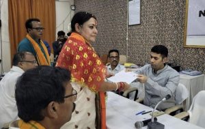 नामांकन में अग्निमित्रा ने किया शक्ति प्रदर्शन, उमड़ी भीड़ से गदगद है प्रत्याशी, हिरण ने भी घाटाल से किया नामांकन