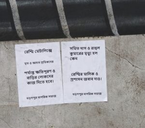 इधर आमरा वामपंथी समर्थक खड़गपुर नागरिक समाज के नाम पर अविलंब क्षति पूर्ति देने की मांग पर पोस्टर लगाए।