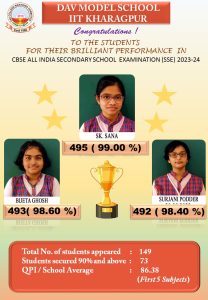 The students of DAV Model School IIT Kharagpur have performed brilliantly in the recently declared result of CBSE class 10 and 12.