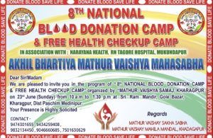 अखिल भारतीय माथुर वैश्य महासभा द्वारा अष्टम राष्ट्रीय रक्तदान शिविर का आयोजन 23 को