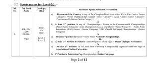 Grade Pay (Rs.) Level Minimum Sports norms for recruitment