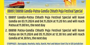 The Special train will have stoppages at Kharagpur, Tatanagar, Chandil, Muri, Ranchi and Lohardaga in SER jurisdiction.