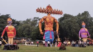 Along with Ravana, 30 feet tall effigies of Kumbhakaran and Meghnad were also burnt. Hanuman’s flying with the help of drone was the center of attraction among the audience.