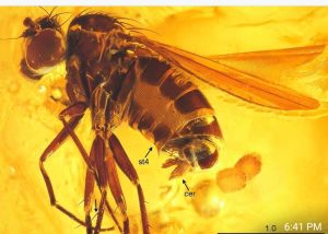 Fig.5: An extinct fly preserved in tree amber of Vastan (photo courtesy Dr. H.S. Rana, Birbal Sahni Institute of Palaeosciences, Lucknow)
