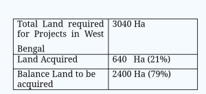 Government of India is geared up to execute projects, however success depends upon the support of Government of West Bengal. For instance, details of some major projects which are delayed due to land acquisition are as under:-