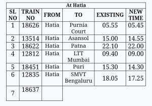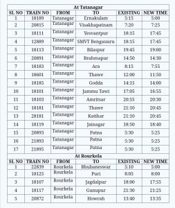 It has been decided to revise the schedule of originating timings of the following SER trains as per details given below w.e.f 01.01.2025:
