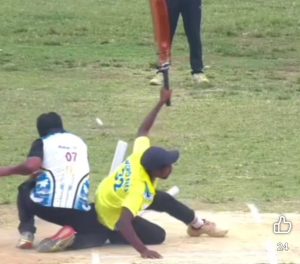 शुक्रवार को वार्ड 22 व 32 के बीच खेले गए क्वार्टर फाइनल मैच में एक अजीबोगरीब वाकया देखने को मिला। वार्ड 22 में पहले बैटिंग करते हुए 6 ओवर में तीन विकेट के नुकसान पर 76 रन बनाएं। 77 रन का टारगेटक का पीछा करतेहए वार्ड 32 की टीम जब बैटिंग कर रही थी अरविंद घोष पांच गेंद पर सात रन बनाकर खेल रहेथे।