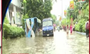 कोलकाता में रात भर हुई मूसलाधार बारिश के कारण जनजीवन अस्त-व्यस्त