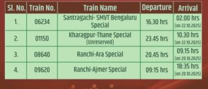SER FESTIVAL SPECIAL TRAINS TO RUN ON 19.10.2025