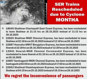 08073Santragachi – YelahankaSpecial will leave Santragachion 21.11.2025 & 28.11.2025 at 14:45 hrs and will reach Yelahanka at 00:55 hrs, the third day. In the return direction, 08074Yelahanka – SantragachiSpecial will leave Yelahanka on 23.11.2025 & 30.11.2025 at 04:45hrs and will arrive Santragachiat 14:00hrs, the next day.